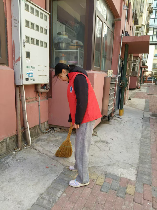 在社区街巷和背街小巷,我手持扫帚和簸箕,迎着晨光清扫路面、捡拾杂物,细致清理绿化带深处的塑料垃圾和卫生死角的枯枝碎石。每一次弯腰、每一次清扫,都是对社区家园的守护,看着经过自己打扫后焕然一新的街巷,我也真切感受到了劳动的价值与意义。