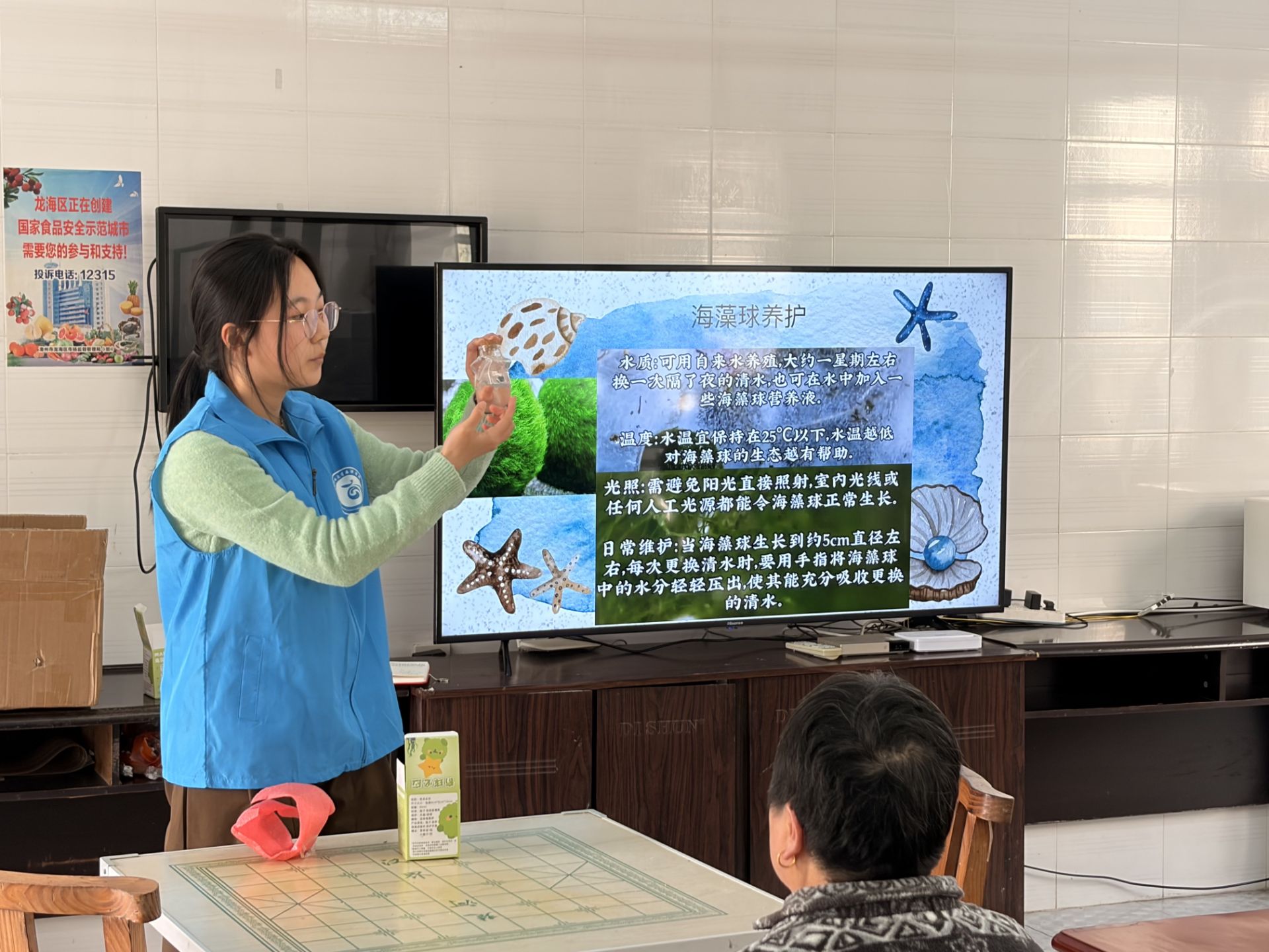 情感陪伴是华侨养老服务中不可或缺的核心环节。针对部分华侨老人子女常年在外、独居生活的现状,活动以易于养护的海藻球为情感媒介,为老人们搭建起与自然对话、寄托心绪的桥梁。实践队通过细致指导老人掌握海藻球的换水频率、光照需求等简易养护技巧,让每位老人都能拥有专属的“绿色伙伴”。这些圆滚滚的淡水藻类以缓慢生长的生命韵律,呼应着华侨老人扎根侨乡、从容度日的人生轨迹,老人们在每日照料、观察生长的过程中,既能在专注中舒缓身心,又能通过与生命的细微互动填补情感空白,有效缓解独居带来的孤独感。海藻球所承载的陪伴意义,不仅为华侨老人的晚年生活增添了生机与盼头,更成为侨乡养老服务中以小见大、传递温度的生动实践。