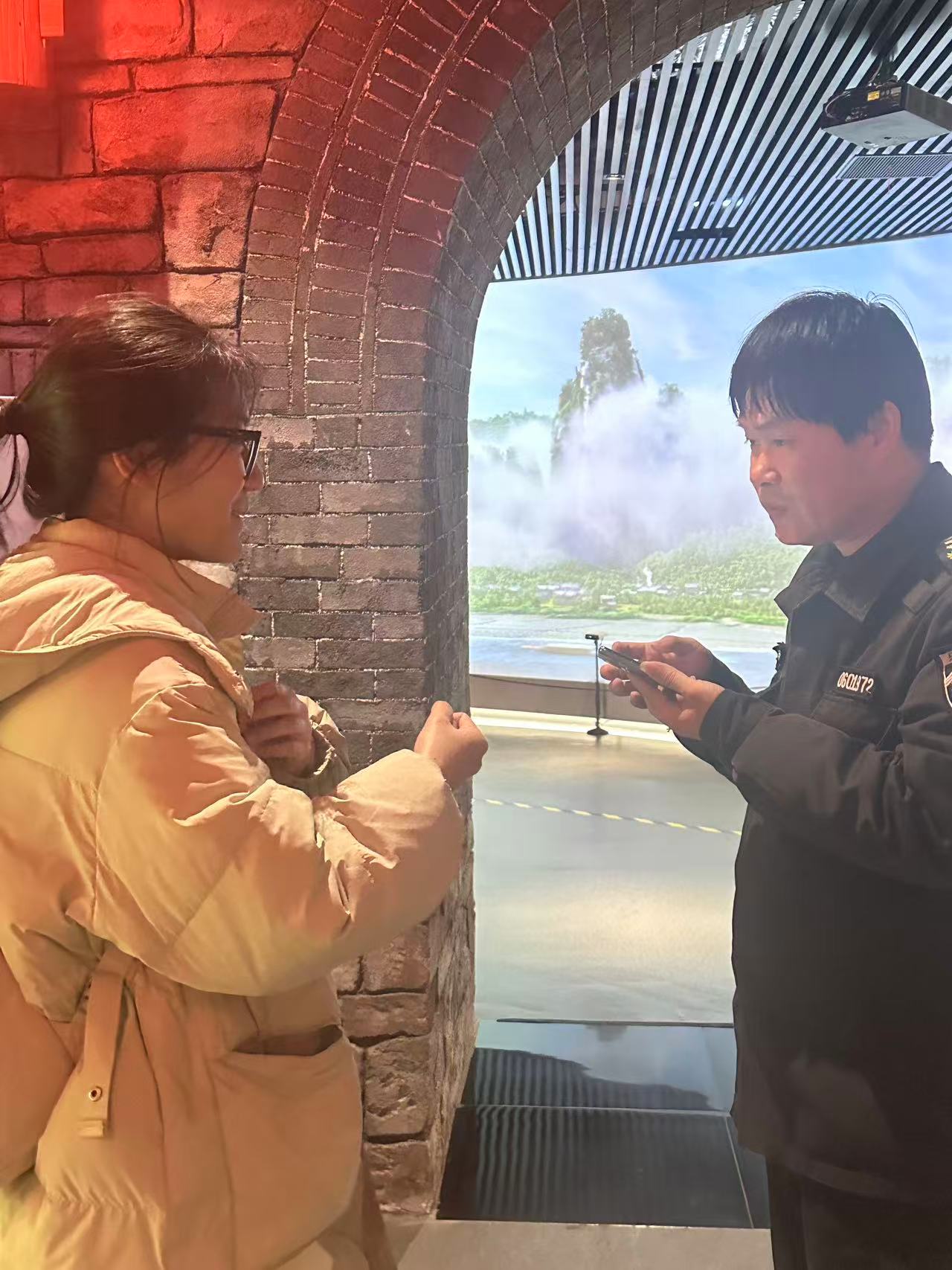 图为实践团成员与非遗博物馆工作人员交流。章雨涵 供图