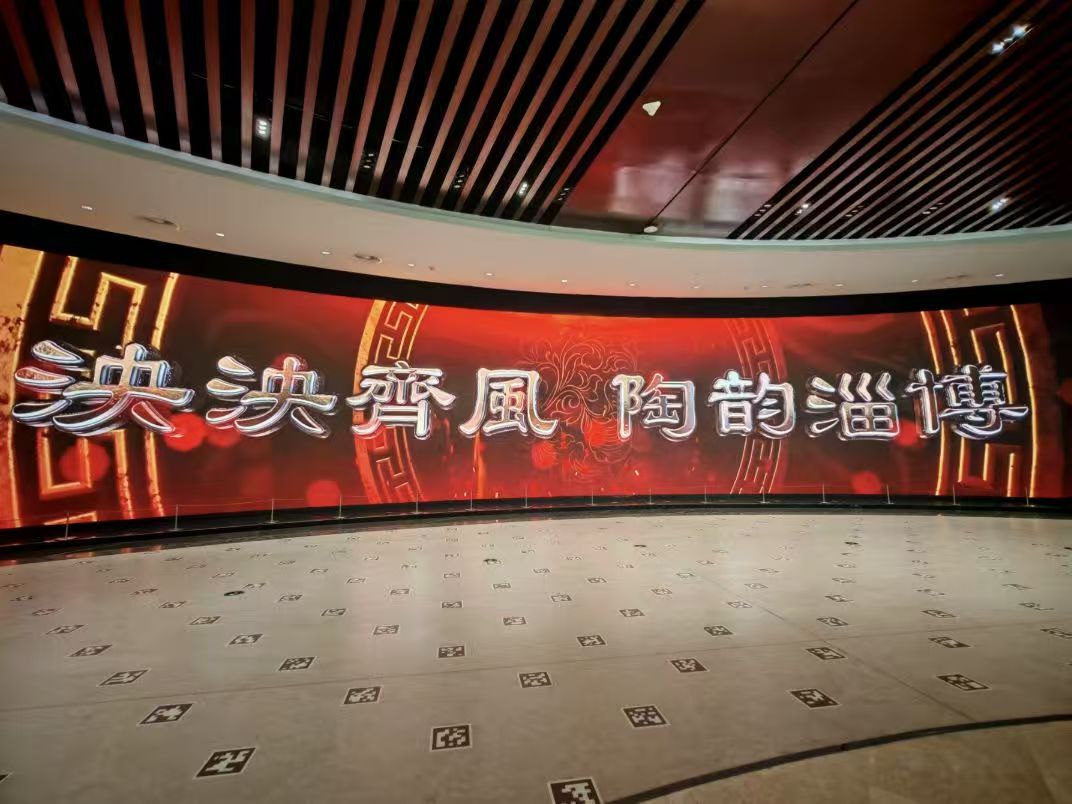 中国陶瓷琉璃博物馆作为国内规模最大、藏品最丰富的陶瓷琉璃专题博物馆,是展现淄博“中国瓷都”“琉璃之乡”魅力的重要窗口。一踏入博物馆序厅,“泱泱齐风 陶韵淄博”的巨幅光影装置便直击人心,赤红的底色承载着齐地的雄浑气魄,金色纹样勾勒出陶琉工艺的精巧雅致,光影流转间,千年陶琉文化的厚重与璀璨扑面而来,瞬间将实践队员们带入跨越时空的文化之旅。从远古陶器的质朴粗犷,到唐宋瓷器的温润典雅,再到现代陶琉的创意革新,馆内数万件藏品串联起淄博陶琉工艺的发展脉络,成为解读齐风匠心的鲜活教材。