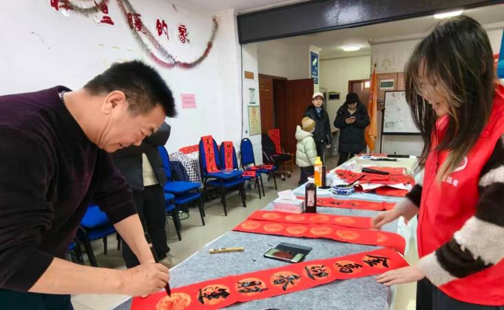 图为组员在社区进行春节文化宣传实践辅助工作。翟雨馨 供图