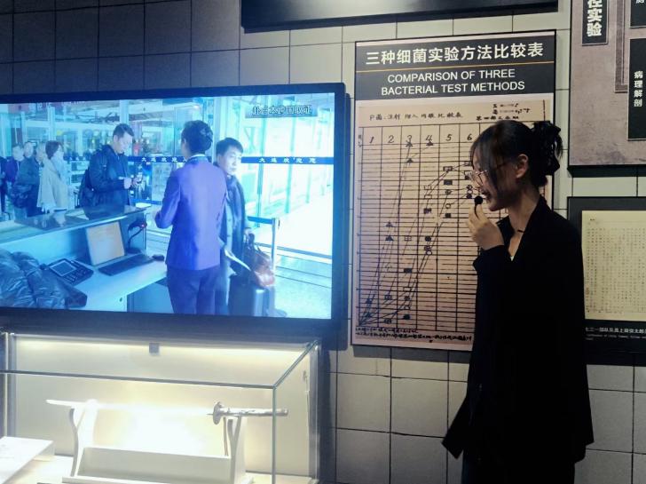 图为组员在博物馆志愿进行731相关历史讲解。计鑫彤 供图