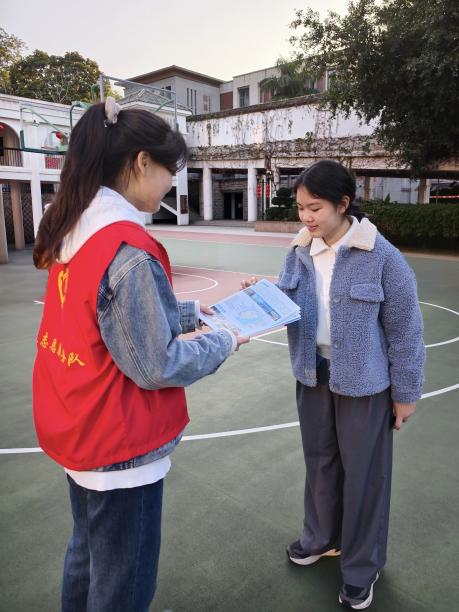 图为组员在社区广场请同龄人填写问卷。陈雨馨