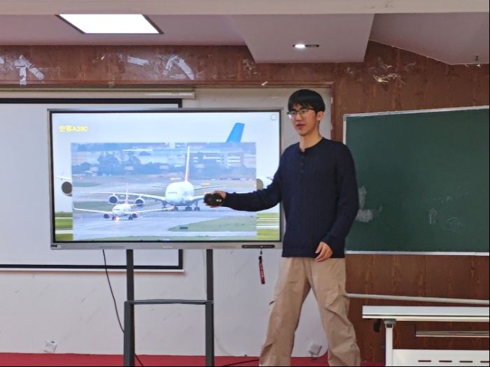 航天科普课堂上,队员们以我国国产大飞机为引对航天科技展开介绍,点燃心间航天梦想。