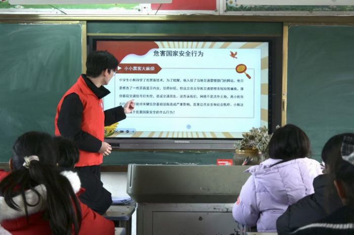 普法宣传进校园,国家安全润童心 实践队队员们走进朱顶镇井头小学,为小朋友们开展了一场“国家安全”主题讲座,通过情景模拟、动画解读等形式,生动形象地讲解了个人信息保护、网络行为规范以及反诈防骗知识,引导孩子们树立网络安全意识和国家安全观念。课堂上小朋友们互动积极,反响热烈,获得了师生们的一致好评。