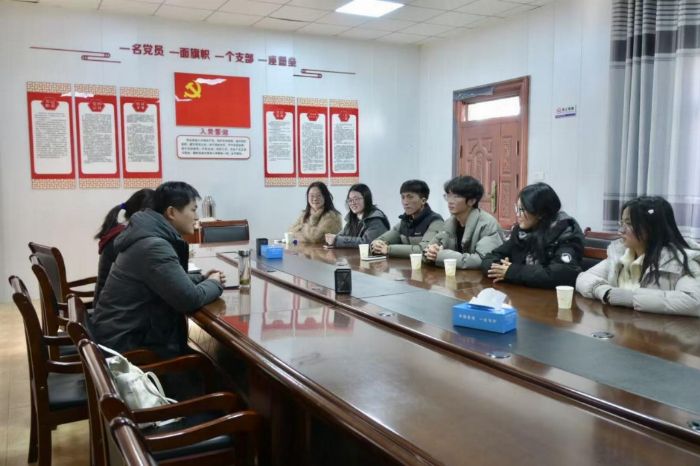 青年视角献良策,交流碰撞凝共识 在朱顶镇人民政府召开的交流座谈会上,安徽财经大学实践队与乡镇领导围坐一堂,分享交流思考感悟。乡镇工作者结合当地发展实际,介绍了朱顶镇在乡村振兴过程中的探索实践、阶段成效与发展规划,也谈及乡村在人才、技术等方面的需求与困境。实践队队员们结合自身专业所学,为当地乡村发展建言献策,积极响应乡镇对于青年力量的号召。双方的深入交流,为当地乡镇发展提供了青年视角的新思路,凝聚起校地携手助力乡村振兴的青春共识。