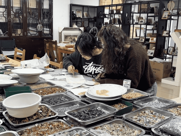 走访传承,探寻非遗根脉为深入挖掘桂林石画的文化内涵与技艺精髓,实践队率先走访桂林石画非遗传承人,与传承人面对面交流探讨,详细了解桂林石画从选材、构图到粘贴、铺撒的全套技艺流程,聆听非遗背后的创作故事与文化传承历程。在传承人现场演示与讲解下,实践队成员沉浸式领略到桂林石画的独特艺术魅力,精准把握这一传统艺术的创作要点与文化价值,为后续课程研发积累了鲜活且珍贵的一手资料,筑牢了非遗课程设计的文化根基。