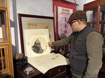 图为传承人介绍非遗制品