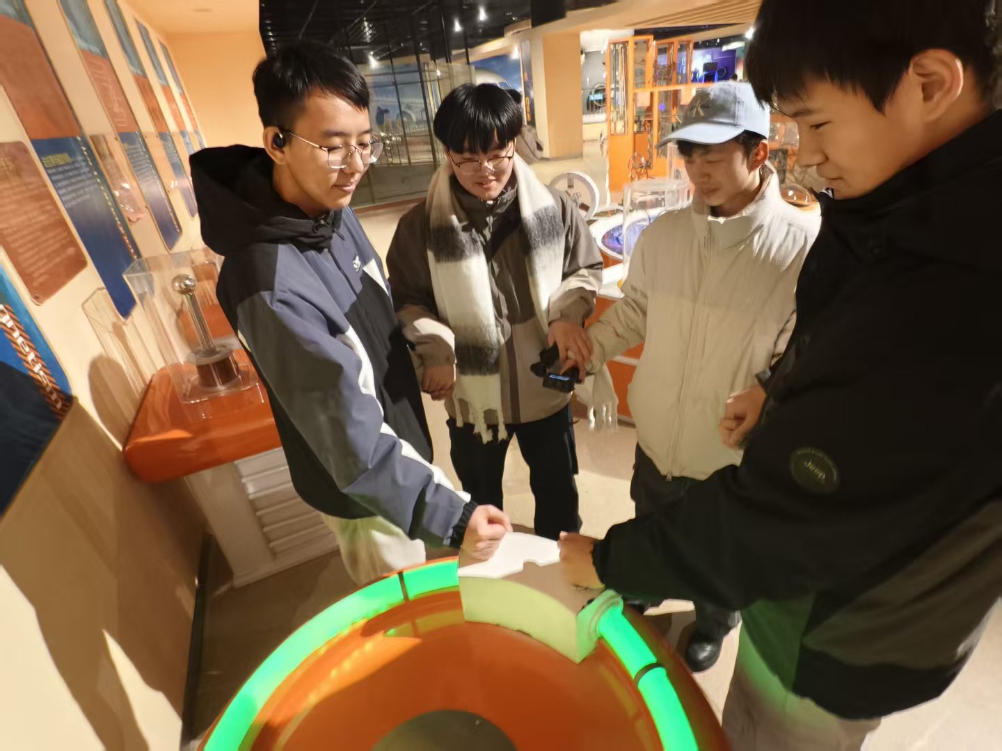 随后,实践队前往威海市科技馆继续开展调研学习。在科技馆中,“低空经济”相关展区引起了队员们的广泛关注。随着无人机技术、人工智能以及智慧交通的发展,低空空域正逐渐成为国家发展的新战略空间。展馆通过沉浸式体验和互动展示,生动呈现了无人机物流配送、城市空中交通等未来应用场景。通过模拟系统,队员们了解到低空智联管理系统如何实现对飞行器的实时监控与智能调度,为未来空中交通网络提供技术支撑。大家深刻体会到,科技创新不仅推动经济发展,也为国家安全提供了新的技术保障。低空经济的发展不仅意味着新的产业机遇,也意味着国家在空域管理与安全治理方面需要更加先进的技术与制度保障。