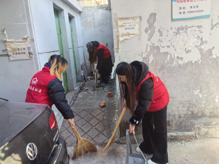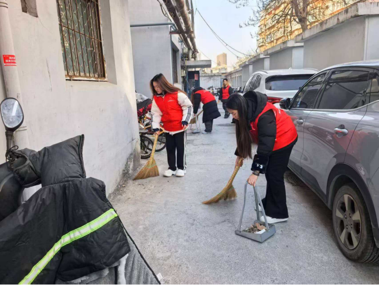 志愿者清扫时一直坚持细致的态度,对每一处地方仔细检查。不管是巷道拐角处隐藏的地方,还是居民区周边狭小空间里,都有尽心尽力的身影。红色马甲在冬天的社区里特别醒目,表现出志愿者精神。居民为无私服务行为点赞。