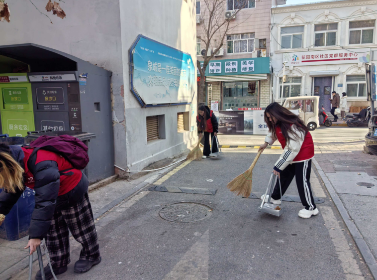 为了贯彻高校学生志愿服务的理念,助力社区环境质量的改善,山东英才学院商学院(国际学院)“社区焕新”实践团成员于2026年1月12日——2026年1月15日来到济南市历城区洪家楼街道花园南区社区,开展了为期3天的社会实践活动,以清洁整中心的社区志愿服务活动,给居民创建出了一个干净整洁、舒适宜居的生活家园。
