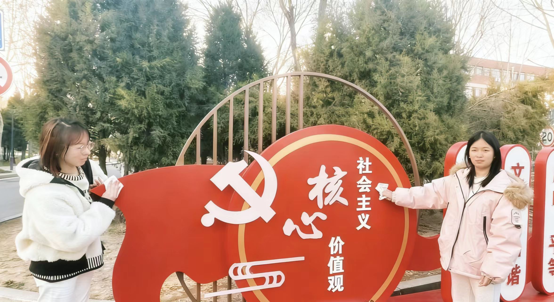 随着实践活动的开展,实践团成员参与了守护社区公共文化设施的工作。成员们分工协作,开展排查各类文化设施的完好度,逐一擦拭“社会主义核心价值观”主题雕塑、清理宣传栏积尘,规范公共文化标识的摆放与维护,保障社区文化阵地整洁有序。本次维护工作覆盖社区核心文化展示区域,有效改善了公共文化设施的外观与使用状态。后续实践团将根据排查结果,对存在轻微损耗的设施建立简易台账,为社区常态化管理提供参考。