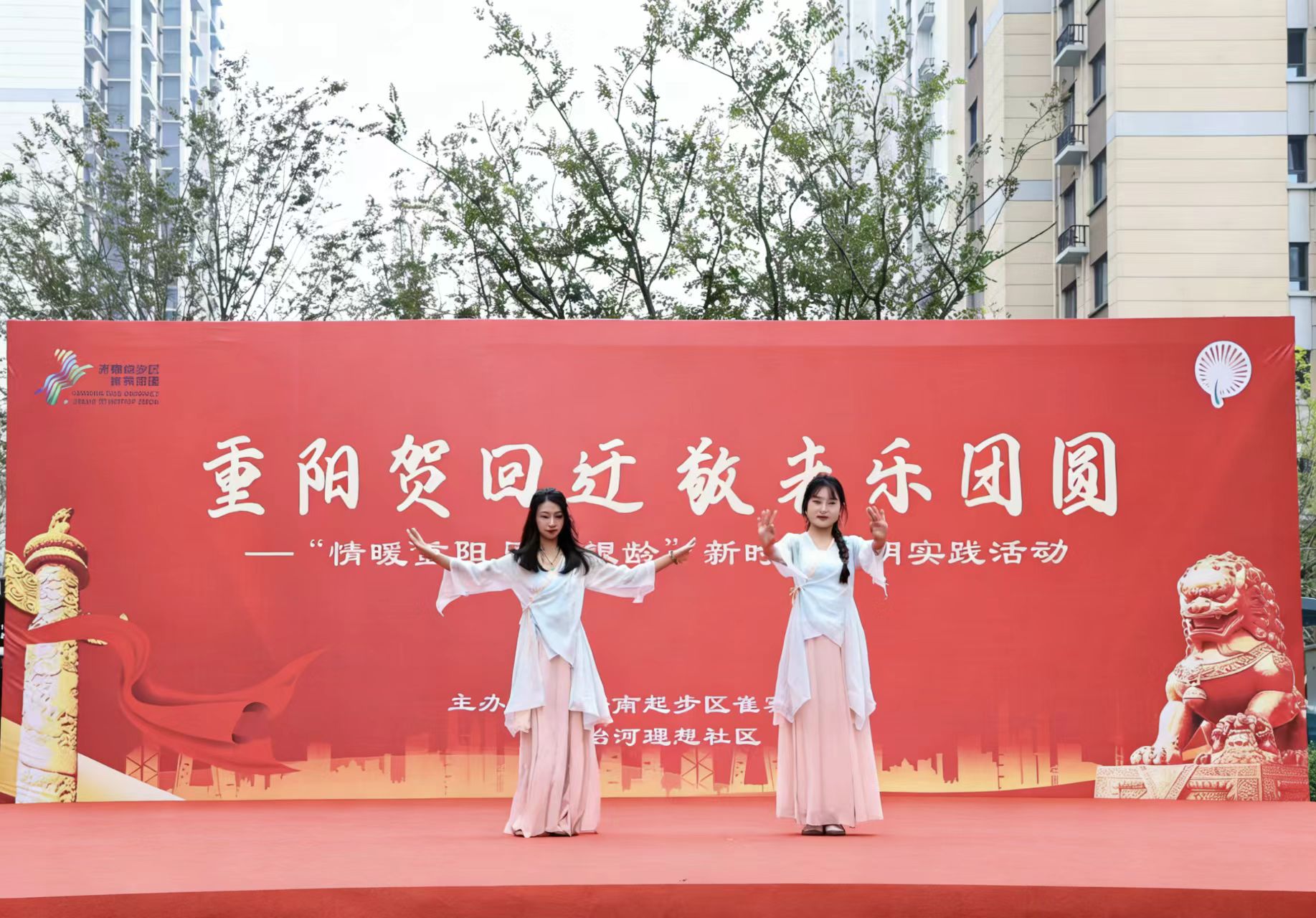 图为实践团成员为社区居民送上文艺表演