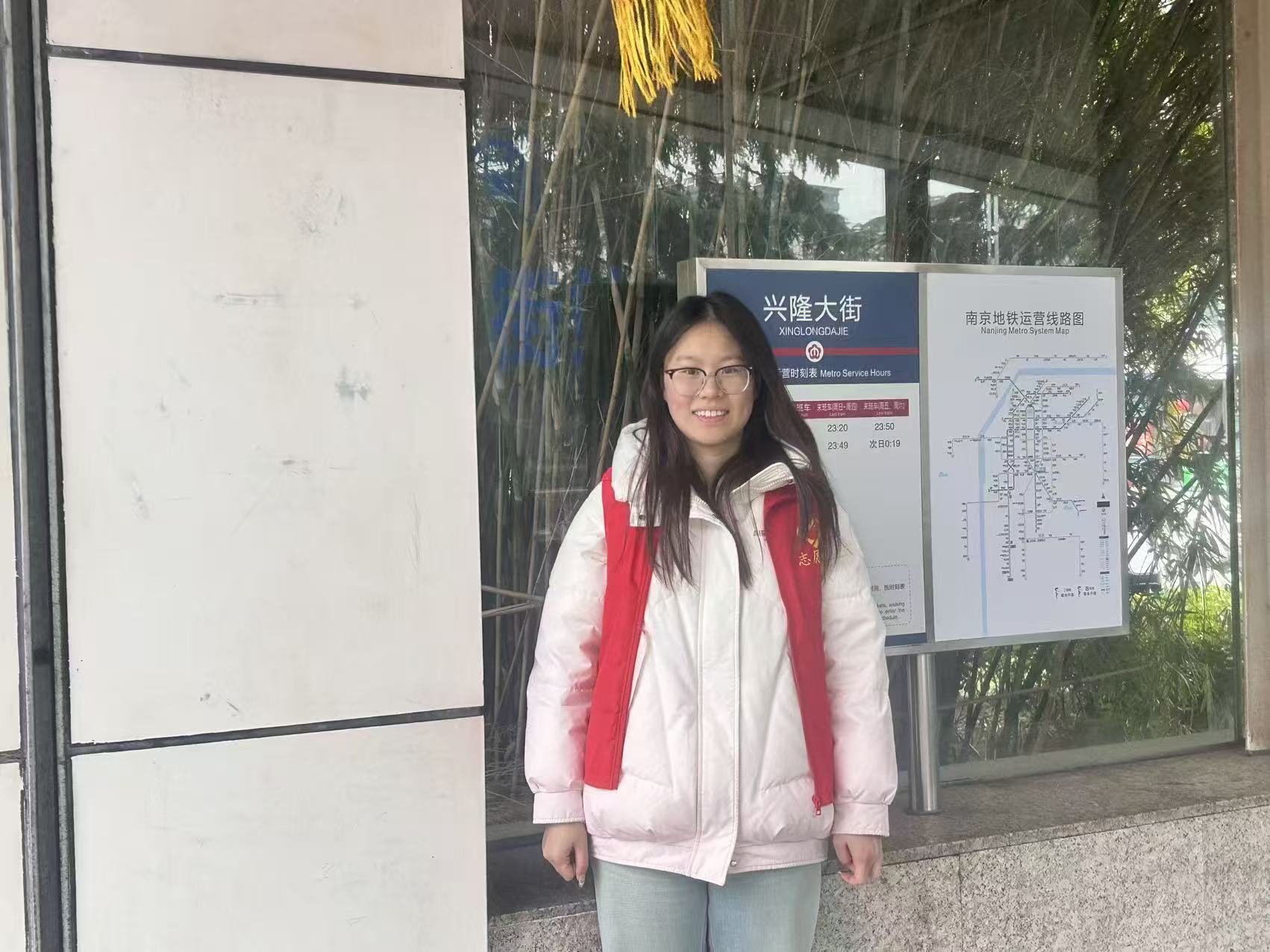 图为实践团成员在南京地铁运营线路图前为乘客提供出行指引。志愿者们主动为初次乘坐地铁或对路线不熟的乘客讲解换乘方式、规划路线,帮助大家顺畅出行。张诗晗 供图