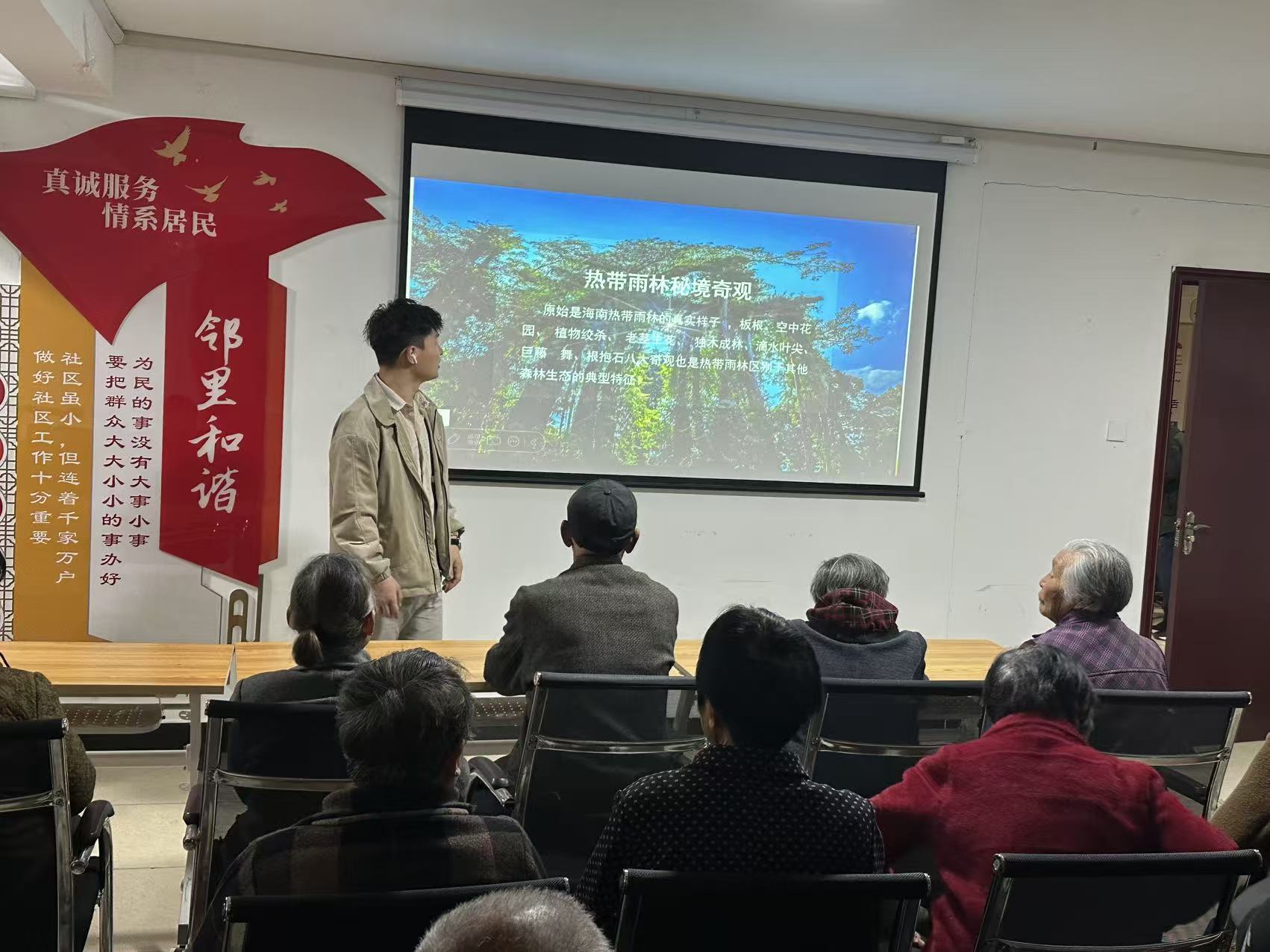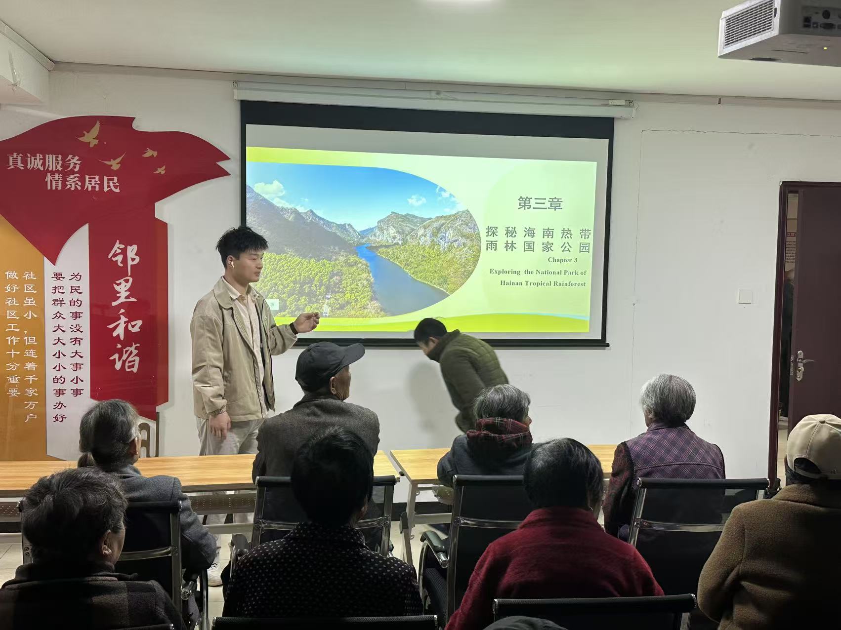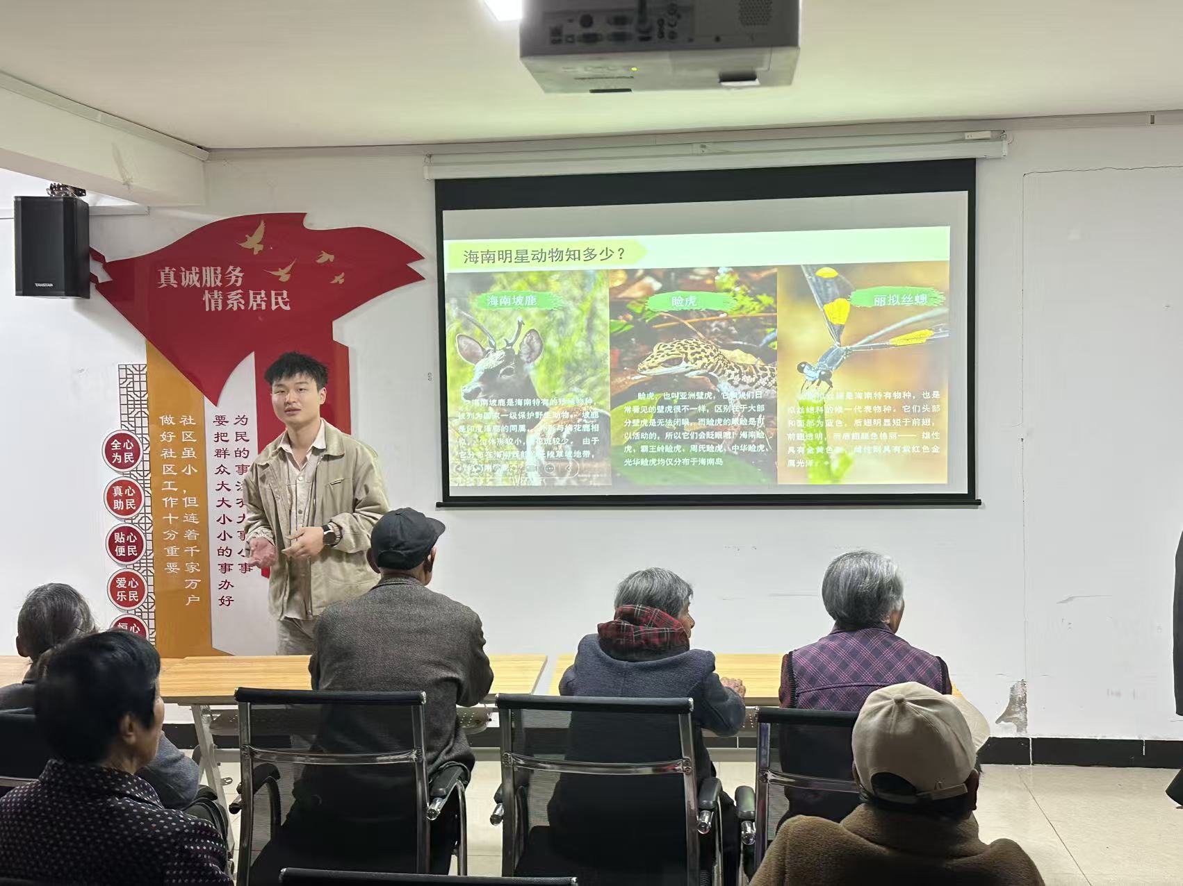 2026年4月20日,安徽中医药大学杏林新生代支援服务队在光明之家社区开展“海南公园美如画 生态文明惠万家”志愿主题讲座,意在传播海南省国家森林公园在珍稀植物、濒危动物、矿脉价值、生态文明等方面的巨大作用与价值,借此传递保护生态的环保思想。