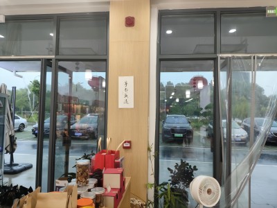 踏入九华山特产超市,首先映入眼帘的便是精致典雅、琳琅满目的展柜,柜台色调温暖,似乎隔开了门外的密雨,自成一方秘境,柜上排排摆放着茶艺师朱文君的个人收藏品,草木、石兽、瓷器、玉石……不似寻常的超市,倒有点像一个小文创店了。墙上还悬挂着几幅书法,给这个超市增添了别样的典雅氛围。