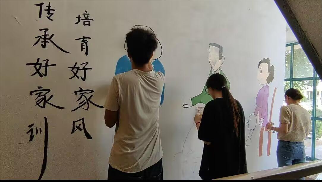 “传承好家训,培育好家风”墙绘的绘画过程 祁继平 供图