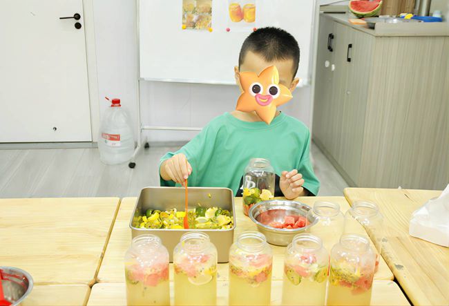 图为“星星的孩子”自己动手制作水果茶的场景,展现了他们出色的动手能力。 刘宇 供图