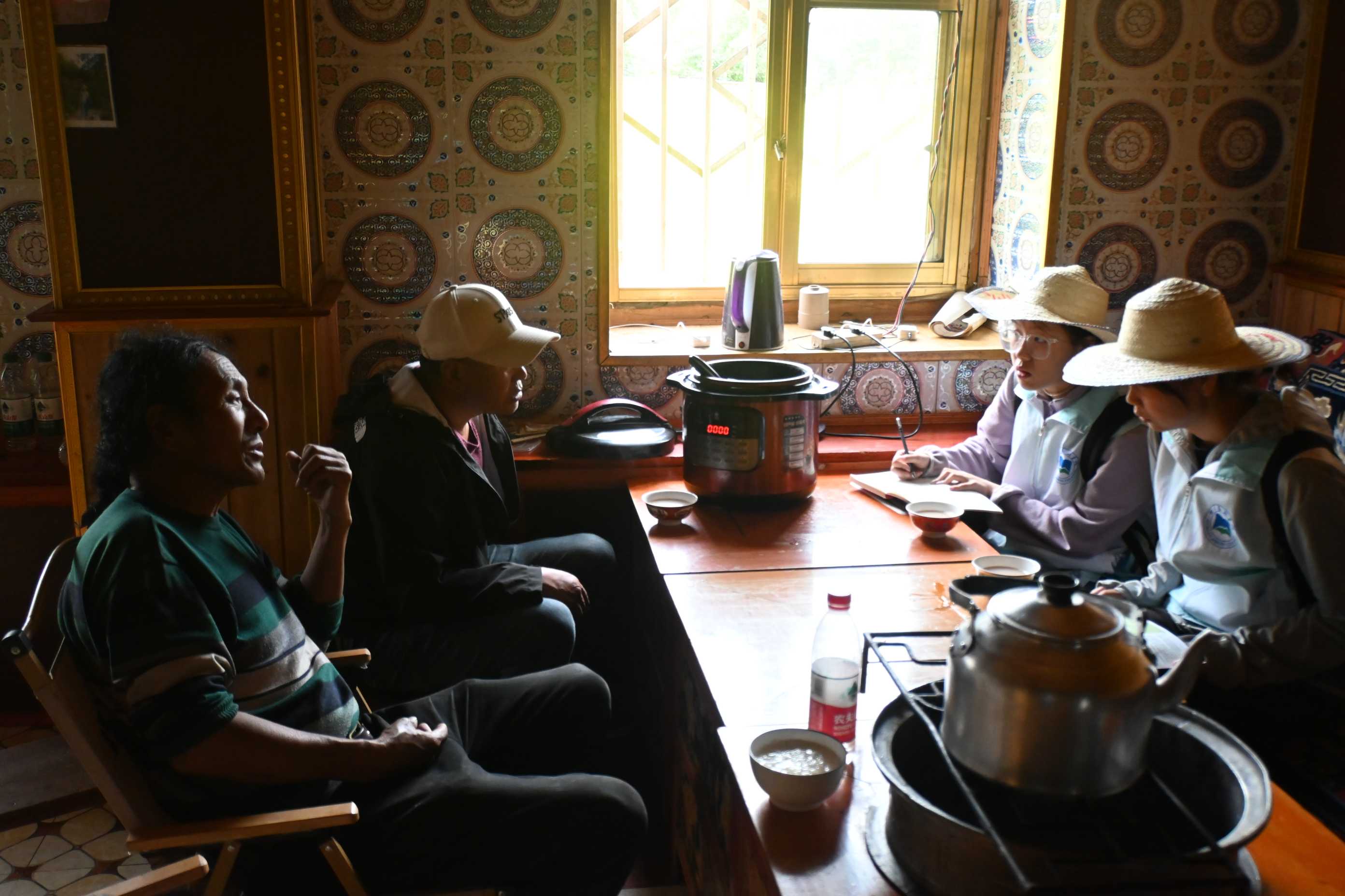 活动前期,成员与沙江村村委会委员进行了简单会面,在交流过程中团队成员了解到近几年沙江村才开启了藏族文化与旅游产业融合发展的新模式,依托丰富的旅游资源和深厚的文化底蕴,大力发展乡村旅游产业。而在接下来村委会的带领下,团队成员开展了挨家挨户的实地调查。