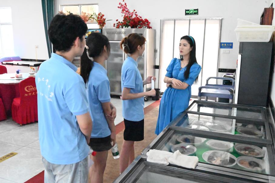图为阳河大院民宿老板向团队成员介绍其特色菜 许艺凡 摄