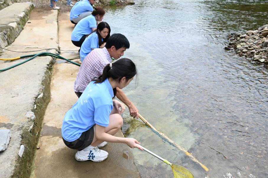 图为团队成员体验民宿特色项目采摘与捕捞 许艺凡 摄