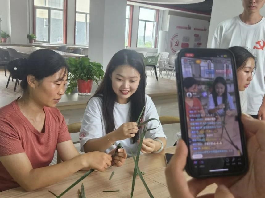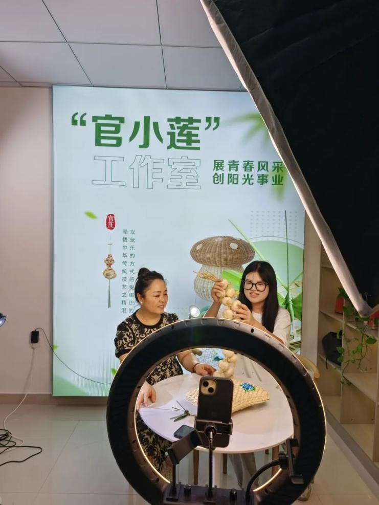 网络直播带货的形式向大众展示编织手艺,开展智慧助民,增加经济收入,减轻家庭负担。