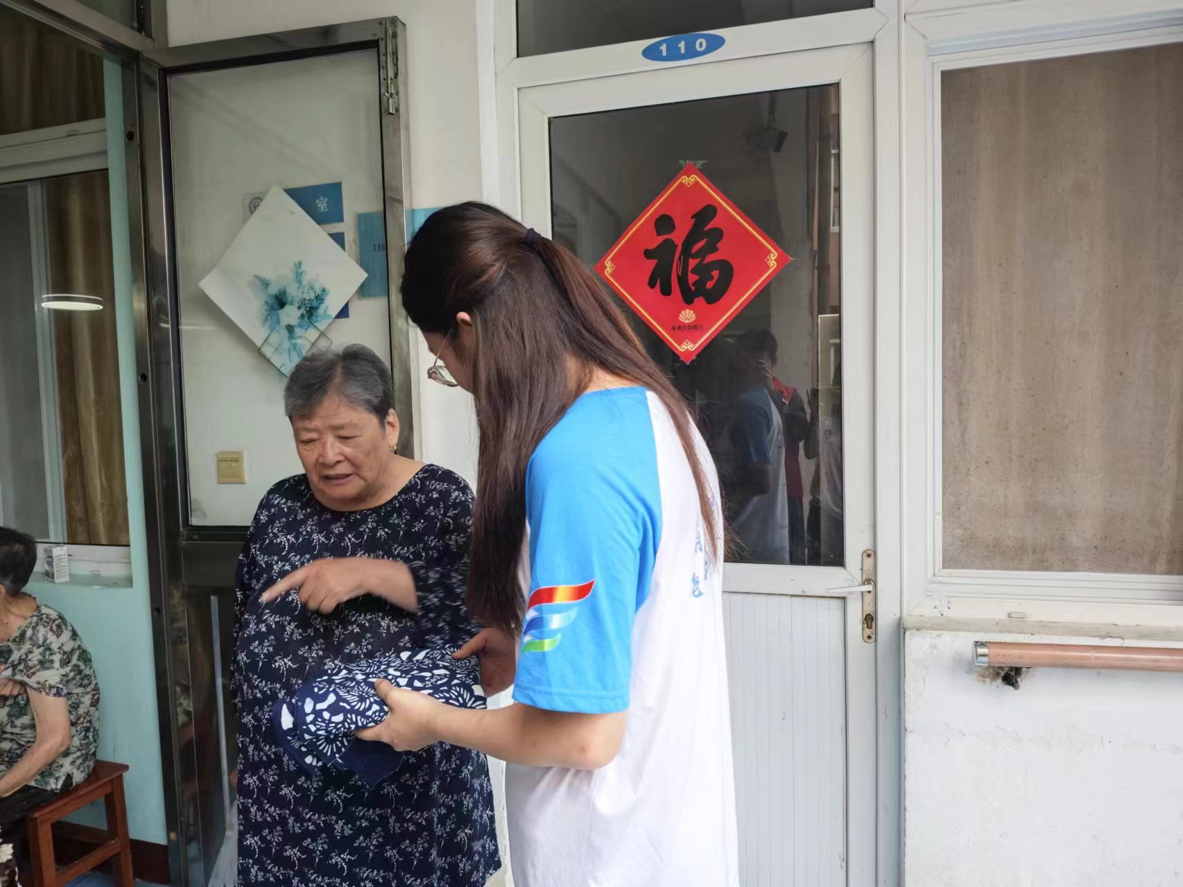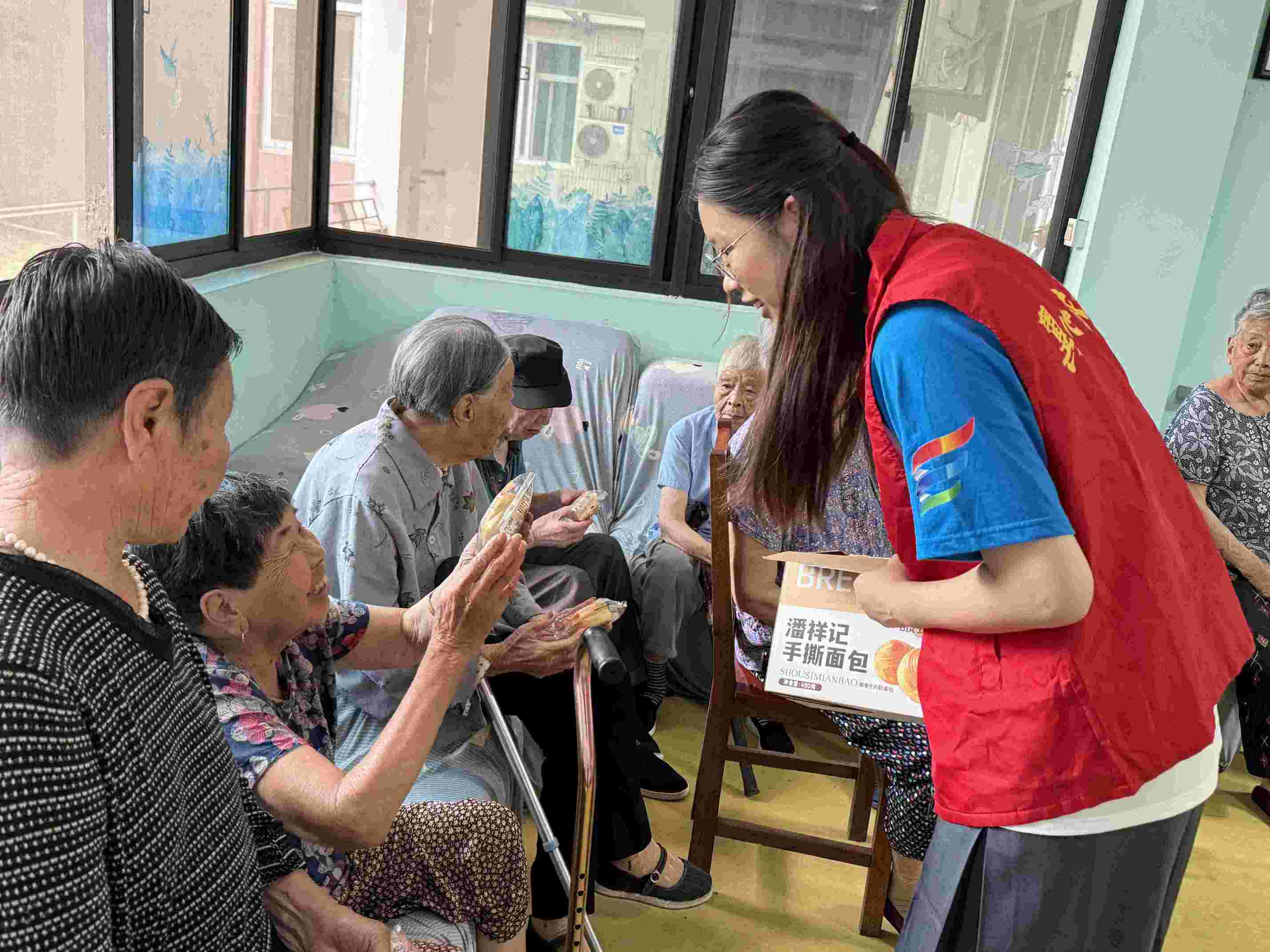 活动中,志愿团成员先向老人们分发爱心物资并聊天解闷,使得他们获得物质温暖的同时,感受到来自志愿团队的精神陪伴力量。