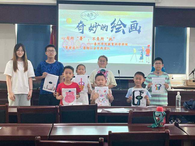 妙手绘童年,拾趣好时光。在本次绘画特色课堂,不仅激发了孩子们对美的追求和创造力的释放,更在他们心中种下了希望与梦想的种子。接下来,泰州学院教育科学学院“聚爱成行”暑期社会实践团队的志愿者老师将继续开展特色课堂,让孩子们获得知识和艺术的滋养,共同绘制出一幅幅更加灿烂辉煌的教育画卷。