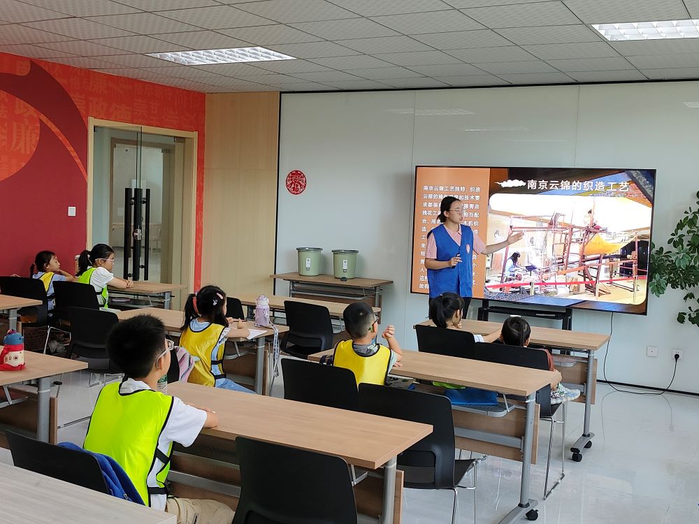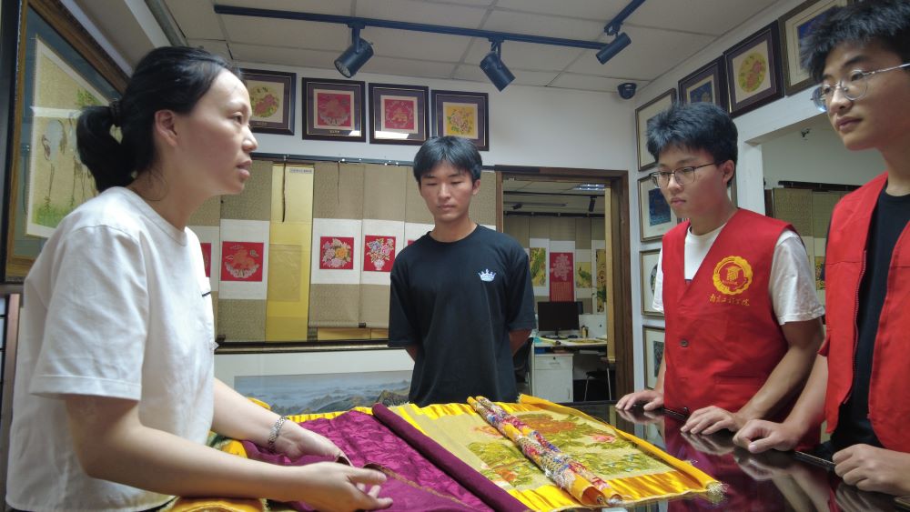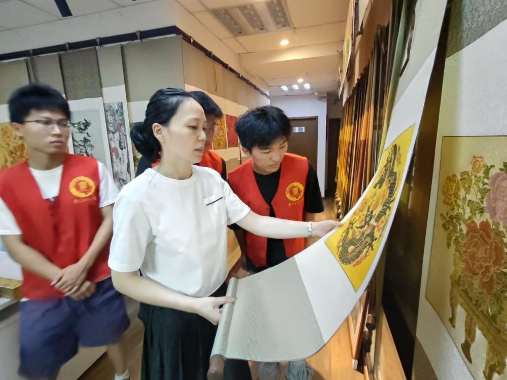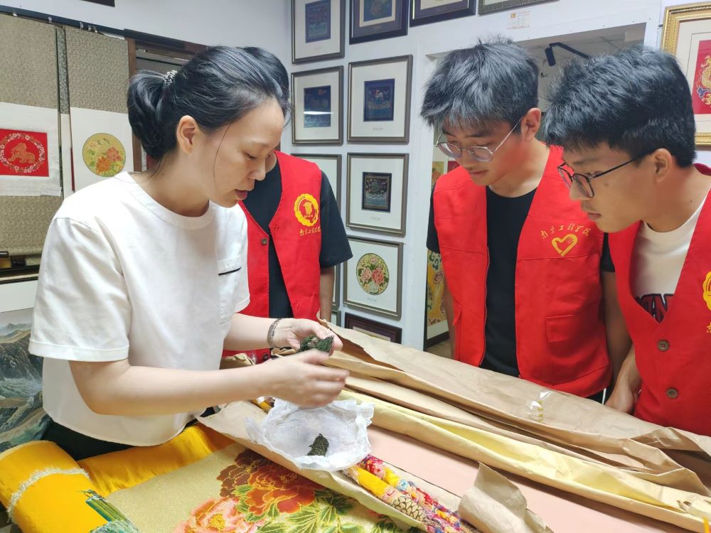 作为云锦生产厂家之一,将传统文化与现代科技相融合,让云锦焕发出无穷的魅力。一踏入云锦宜贡坊,成员们便被眼前华美壮观的云锦制品所吸引。从精美的龙袍、凤袍到各式各样的云锦围巾、手袋,传统美感和现代产品的实用性相融合,既保留了云锦的传统魅力,又赋予了它现代的活力。在讲解员的带领下,成员们详细了解了现代云锦产品的制作过程,包括绞丝、筒子络丝、单丝打捻、并丝、复捻等复杂工序,以及最为关键的“挑花结本”技艺。通过参观学习,团队成员深入了解传统文化,感受到非遗文化的无穷魅力,他们纷纷表示,定要学好科技文化知识,用科技赋能文化传承,以行动弘扬中华优秀传统文化。