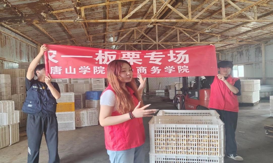 3.熟悉板栗上游加工流程团队成员走进板栗加工厂,了解板栗加工去皮的全过程。在充分调研的基础上,团队成员利用乡村驿站搭建直播平台,将板栗加工厂的生动场景和优质产品直接呈现给广大消费者,对工厂的板栗进行精准售卖,促进从生产到消费的无缝对接,带动工厂板栗的线上销售,促进乡村板栗产业的全方位发展。同时团队成员借助乡村驿站的优势,结合市场需求和消费者偏好,为工厂制定个性化的板栗直播策略,提高直播间的竞争力,进一步推动乡村板栗产业的发展。