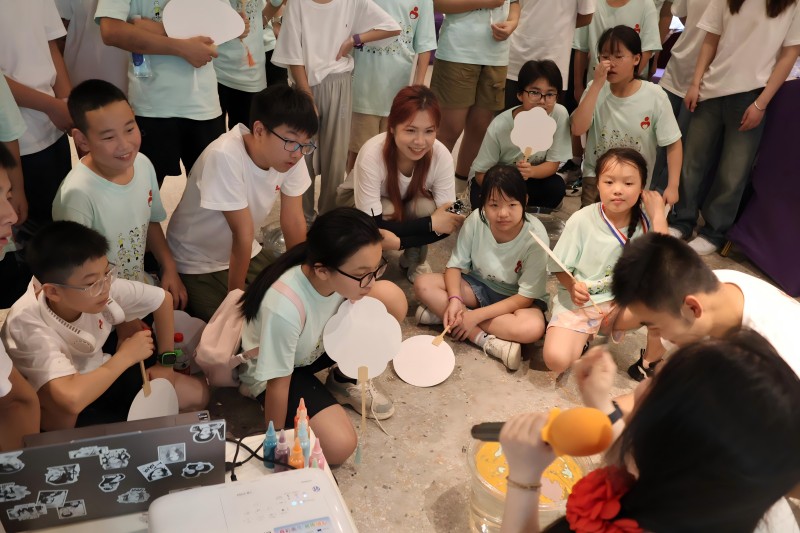 Part3 漆扇制作近几年来,各式各样的漆扇,因为其简单方便的制作过程,以及令人惊艳的呈现效果,在网络上走红。志愿者们因此设计了制作漆扇的环节,带着小朋友们一起领略中国传统文化的魅力,制作一把既可以扇凉,又可以欣赏的漆扇。在水面上点上想要的颜色,撒上金粉轻轻搅拌,再将扇子缓缓浸入水中取出,一把精美的漆扇就制作完成了。