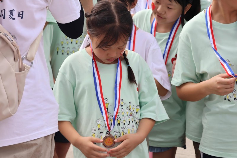 当然,运动会少不了最后的颁奖环节。每位孩子都拿到了相应名次的小奖牌,金牌、银牌、铜牌、参与奖牌,四组小营员们带上属于自己的小奖牌和小伙伴们合照,记录下这一美好的时刻。