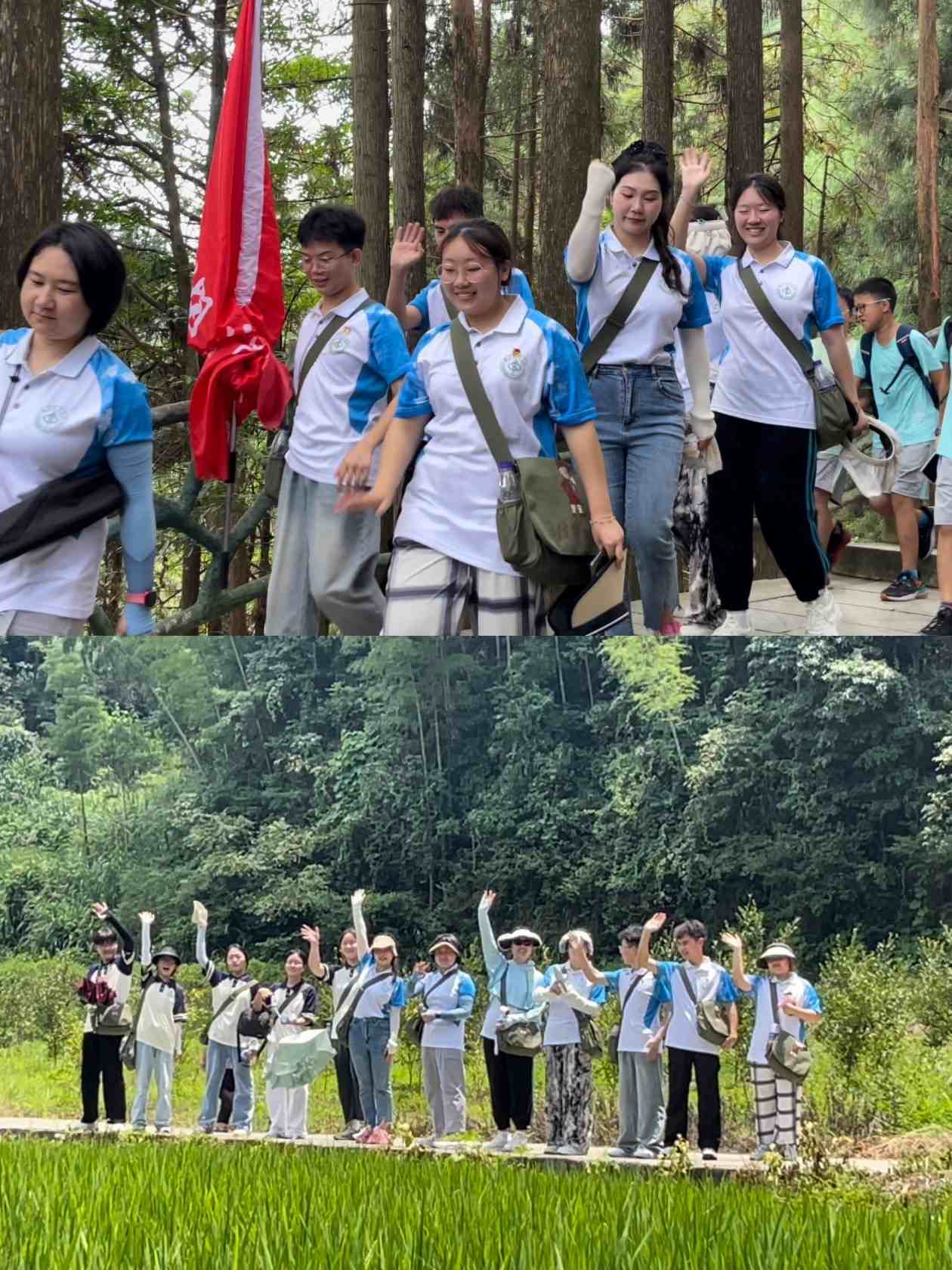 当走到聂槐妆冒死千里为红军送盐的事迹牌前,带队潘老师向大家说道:“今天的我们在行军前,有井冈山中心全面的医疗、食品、安全等保障,甚至还配备了随队医务人员,同学们可以试想当年聂槐妆穿着浸透高浓度食盐的衣物,穿过敌人层层封锁送去救命盐,是多么英勇无畏”,同学们纷纷表示作为新时代青年一定坚守“三个务必”并全心全意投身于祖国医疗卫生事业,绝不让“伤病苦”重现。