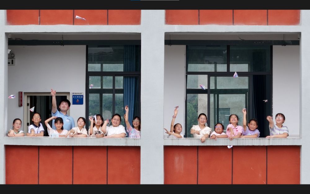 图为放飞梦想纸飞机特色活动开展过程