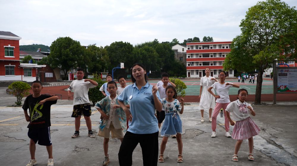 图为队员带领孩子们上舞蹈课