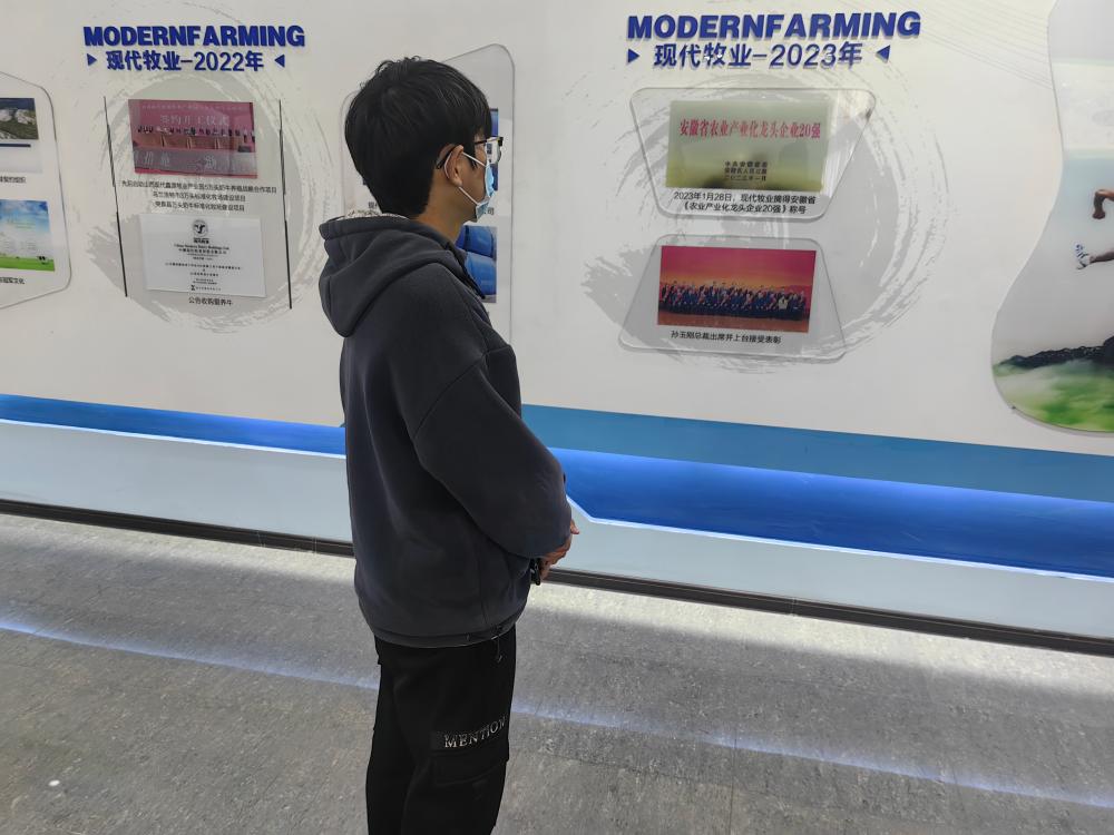 接着,王羽同学来到了五河县现代牧业基地,见识到了现代化农业与畜牧业的发展前景。在基地内,他了解到了现代化养殖技术和环保措施如何结合,通过科学管理提高了生产效率,同时带动了当地农民的就业和收入增长。这一切都为五河县的乡村振兴提供了有力支持。
