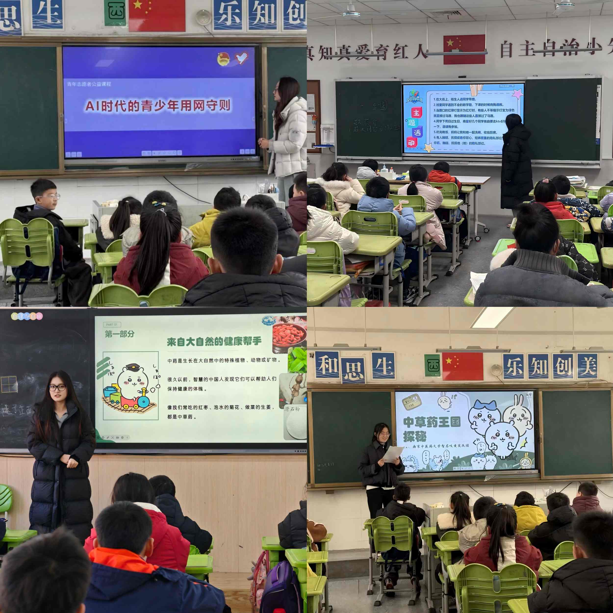作为中医药大学的志愿团队,“智启岐黄”巧妙地将专业底色融入国家安全的宏大叙事。在徐州鼓楼树成小学和常州三井实验小学,艾草、枸杞、陈皮等药材不仅是实物教具,更是引导孩子们理解“药食同源”、“天人相应”传统文化智慧的窗口。
