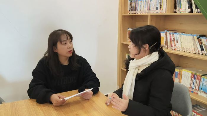 (配图2:网格员向王雪展示非遗活动台账,王雪同步记录相关数据。注:图为基础信息调研现场。多彩大学生网通讯员 王雪 摄)