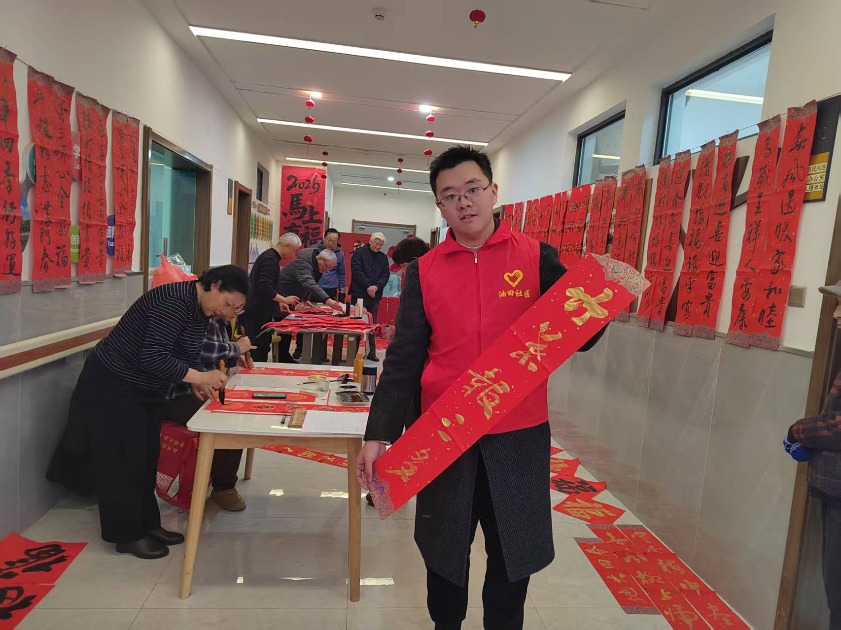 作为扬州市经济技术开发区文汇街道的老旧小区,石油新村居住人口以中老年群体为主,邻里氛围浓厚但基础设施相对薄弱。新春将至,为倡导文明过节新风尚,丰富居民精神文化生活,社区居委会策划开展了烟花禁放宣传、迎春手工制作、老年书法送福、环境整治四大主题活动。郭恒玮得知活动招募后第一时间报名,主动承担起活动筹备与现场服务的重任。