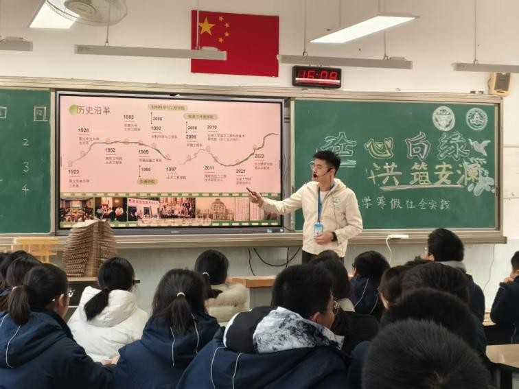 图为聂青云队长为同学们讲解东南大学土木工程学院的历史。狄丙贺 供图