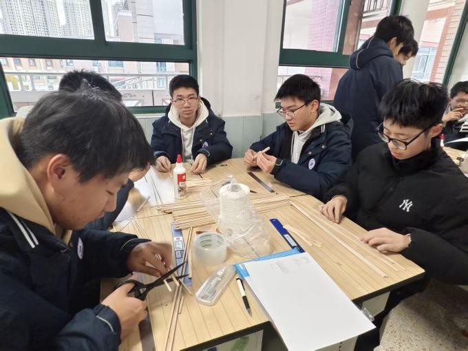 图为姜堰中学的同学们正在制作木桥结构。狄丙贺 供图