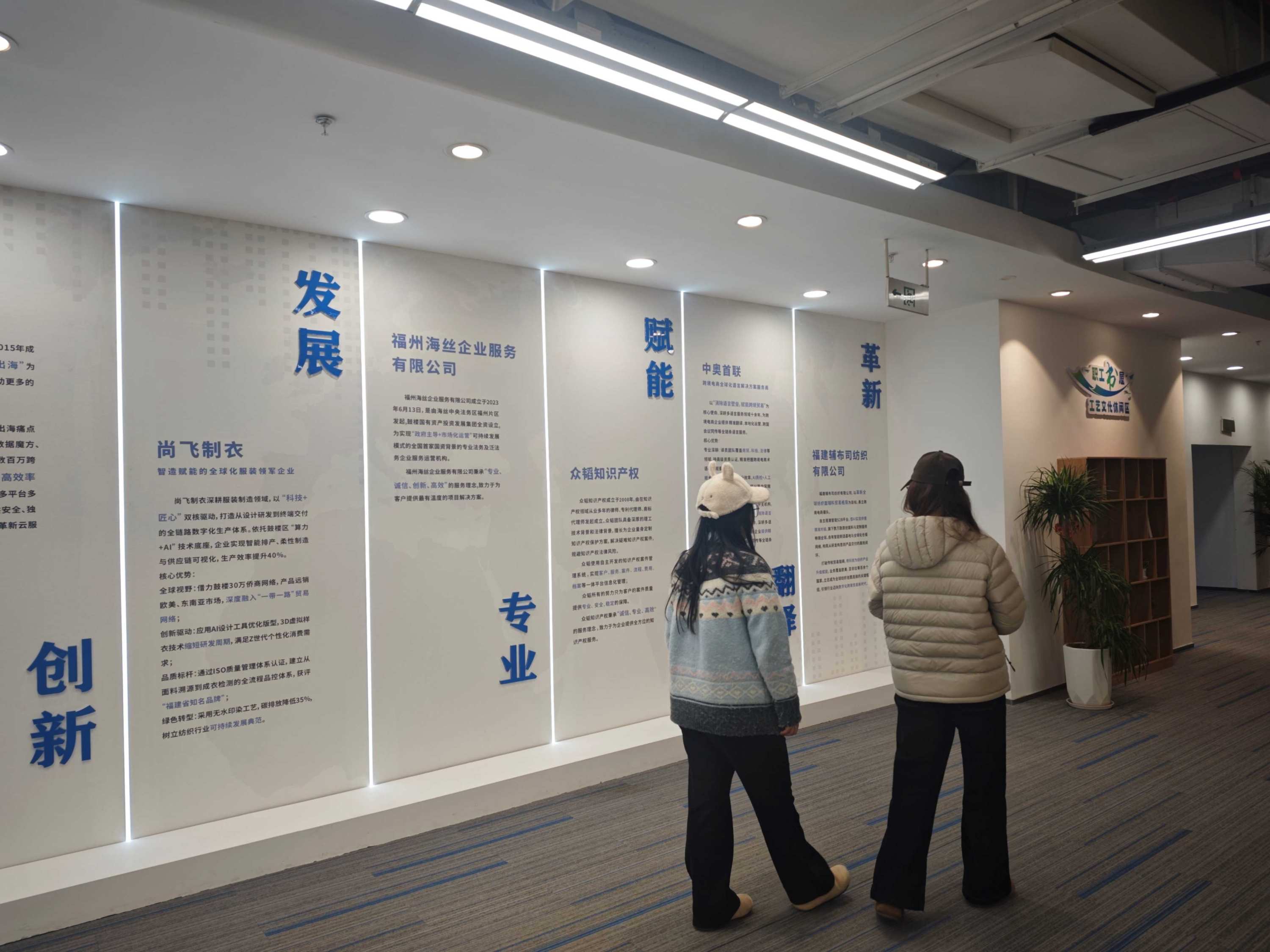 1月14日,实践团抵达福建福州,探访鼓楼国投外贸产业园·润楼跨境电商运营中心。在负责人引导下,参观数字化服务展厅与智能仓储物流区,了解中心与火山引擎、阿里巴巴合作构建的一站式服务矩阵。