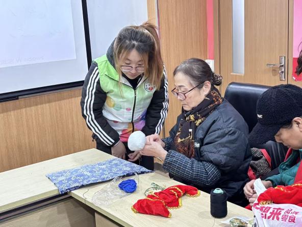 浓情腊八,情暖桑榆。1月26日腊八佳节,志愿队首站走进南苑社区,以“浓情腊八,药韵送暖”为主题为社区老人送上专属关怀。志愿者们将熬制好的腊八粥送到老人手中,伴着暖心问候传递节日温情;结合专业知识科普艾草药用功效与中医养生理念,手把手指导老人制作艾草锤、中药香囊,讲解保健原理与使用方法,让老人们在体验手工乐趣的同时,收获实用的养生知识,将健康祝福与节日美好融入手作之中。
