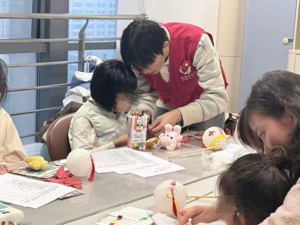 新春守护,童安相伴。1月30日,志愿队联合博爱之家走进南京市儿童医院河西院区,打造“本草纳福,灯影话养生”新春专场活动。针对患病儿童的身心特点,设计沉浸式互动环节:“五感润心剪灯礼” 让孩子们亲手制作本草灯笼,寄托健康期盼;“中药声音故事剧场”以听声辨药、绘画创作的创新形式,让抽象的中药知识变得生动有趣;“情绪暖心打卡墙”成为孩子们抒发心愿的温暖角落,养生知识抢答、暖心小礼品更是为孩子们驱散就医的紧张情绪,在欢乐互动中感受传统文化魅力与社会关怀。