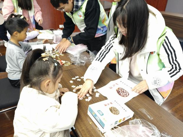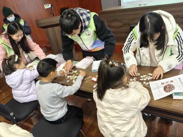 社区萌娃,药润童心。2月2日,志愿队走进白马社区活动中心,为寒假里的小朋友打造趣味中医药文化体验活动。“安心小香囊”制作环节,志愿者讲解薄荷、陈皮等药材功效,指导孩子们选料填充,制作专属香氛手作;“拼出中药小世界”拼图游戏,将金银花、胖大海等中药的外形与功效融入其中,让孩子们在游戏中轻松掌握中药常识;“独特的我”自画像环节,陪伴孩子们释放情绪、发现自我,让中医药文化的种子在欢声笑语中扎根童心。