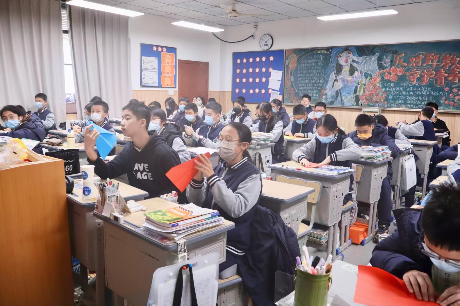 现场五彩纸飞机陆续升空,“中考加油”“前程似锦”等留言格外醒目。有位女生将纸飞机折成歼-20造型,直言“先飞纸的,再飞真的”;还有位男生写下“我也要考上北京航空航天大学”的志向,满是对理想的憧憬。