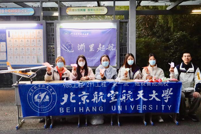 首日课程落幕,实践队在食堂门口搭建摊位,启动“放飞梦想的纸飞机”主题路演。