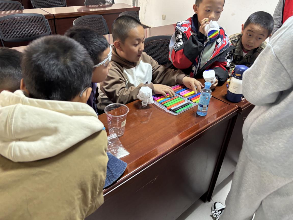 为点亮童心、播撒科学种子,团队走进阿拉尔绿园社区,开展趣味科学实验公益课堂。活动选取“站立的牙签”、“甩不掉的水”、“拉不开的书”、“彩虹泡泡龙”、“特工密信”等贴近生活的趣味实验,以直观演示、动手操作、互动问答的形式,把抽象科学原理转化为生动体验。孩子们在好奇与欢笑中探索奥秘,不仅激发了科学兴趣与探索精神,也为社区少儿成长注入科普力量,获得家长与社区工作人员的一致好评。