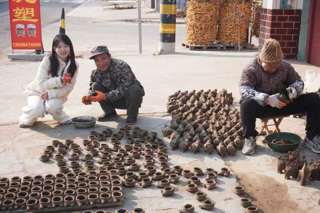 1月28日,中国海洋大学文学与新闻传播学院“薪传三绝”实践队成员前往山东高密聂家庄进行采访调研,探索非物质文化遗产聂家庄泥塑的市场化路径。聂家庄村位于山东省高密市姜庄镇,是国家级非物质文化遗产聂家庄泥塑的发源地。近年来,该村成立了合作社,推动了泥塑生产制作、对外售卖和工坊实践。自2021年以来,聂家庄举办多届非遗艺术节,吸引众多游客,获评“全国非遗工坊典型案例”,并先后获得“山东省文化生态名村”“山东省景区化村庄”等荣誉称号。