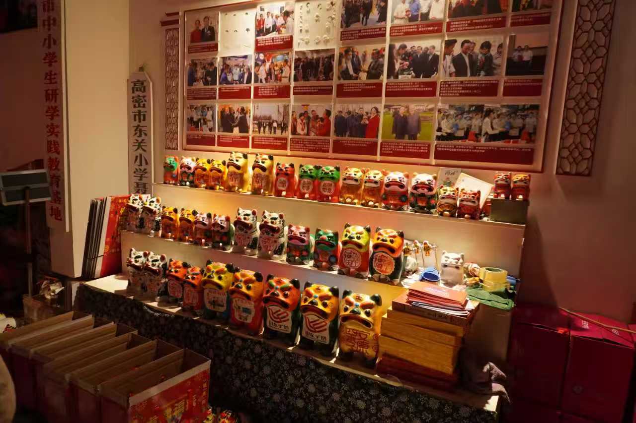 走进聂家庄,非遗小镇的布局清晰可见,有泥塑合作社、非遗工坊、泥塑文化艺术馆、非遗博物馆、泥塑文化广场等公共文化设施,以及高密市新成李记木版年画博物馆、台港澳侨文化交流基地等特色场馆。泥塑超市遍布村中,主要分为三种类型:一是规模较小的泥塑专卖店,多为老年人经营,集制作与售卖于一体;二是生活超市兼营泥塑,这类数量较多;三是专业手工作坊,由非遗传承人主导,制作精细化程度高,具备展示、销售与体验功能。其中,前两种超市主要售卖泥叫虎,第三种亦可称为非遗工坊,售卖泥塑种类繁多,更为美观精致。此外,村里还新建了社区办公楼、小广场、小公园等基础设施,为村民和游客提供了良好的生产生活和游览环境。然而,该地部分展馆如木板年画博物馆、泥塑文化艺术馆等尚未开放,台港澳侨文化交流基地也处于闲置状态。更有村民张大叔坦言,合作社“其实已经黄了,实际上并没有发挥效用”。与此同时,泥塑超市的经营模式各异。小型店铺多为老人自产自销,规模有限;而专业手工作坊则由非遗传承人主导,精细化程度高,但数量有限。